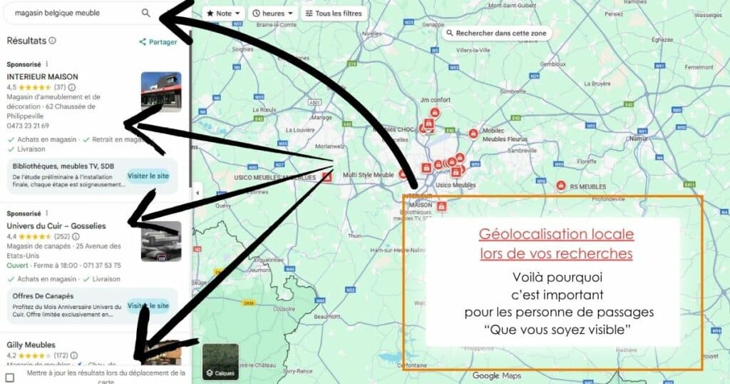 Le SEO local change la donne pour les TPE et indépendants en Belgique. Il conditionne la visibilité auprès d’une clientèle de proximité. Ainsi, il influence directement le trafic en magasin et le chiffre d’affaires. Les chiffres parlent d’eux-mêmes : 46 % des recherches Google visent le local et 72 % des internautes visitent ensuite le commerce identifié en ligne. Dans ce contexte, une fiche Google My Business complète, de bons avis clients et du contenu géolocalisé ne sont plus optionnels. Cet article raconte pourquoi et comment agir, avec des étapes concrètes et des exemples belges.