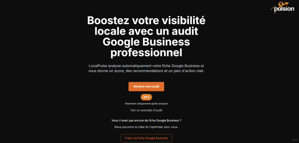LocalPulse est l’audit instantané qui transforme votre fiche Google Business en véritable machine à générer des clients.